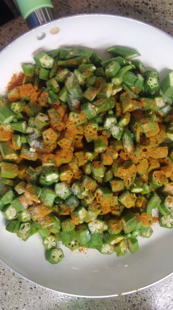 Scientists believe that the variety of antioxidant compounds in the vegetable may help lower the risk of cancer, they believe that these compounds may also have antibacterial and anti-inflammatory properties. The mucilage in okra may also help to remove toxins in the body. It contains folate which is an important nutrient during pregnancy. Since the vegetable contains high fiber, it also helps to reduce the risk of heart problems and cholesterol. Okra is a favorite vegetable in my family. This is a simple recipe and easy to make.