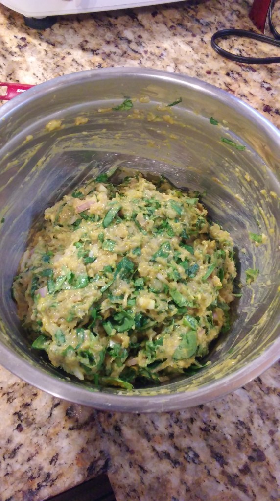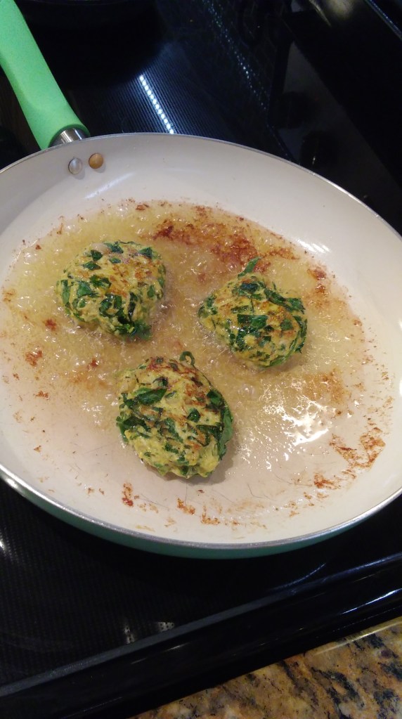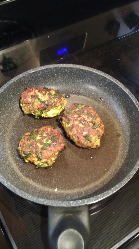 Now take a handful of the dough flatten gently and place it on the hot oil in the pan. Allow each side of the pattie to cook for about 2 minutes. Remove them when they are golden brown.