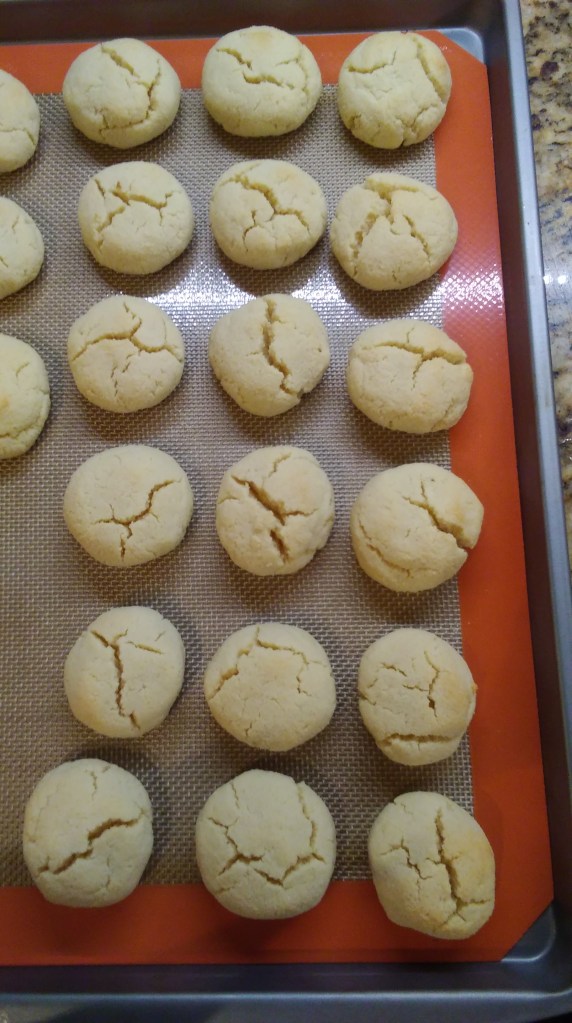 Prepare a cookie sheet for baking the cookies. Make round balls with the dough and flatten the balls gently before placing on the cookie sheet.