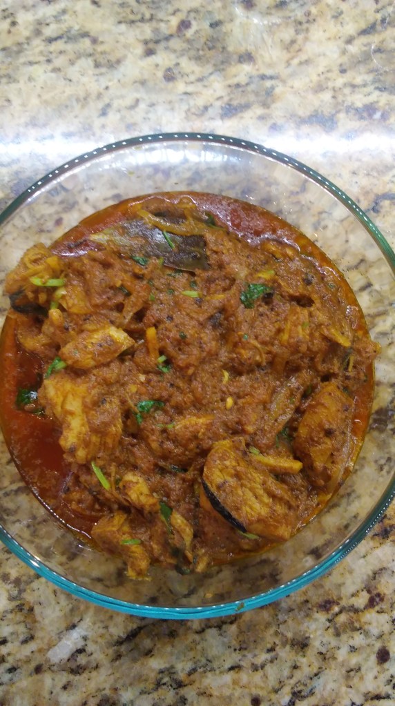 When the oil starts coming to the top , the dish is ready. Now add the 2 tablespoons of coconut milk or heavy cream and mix well.