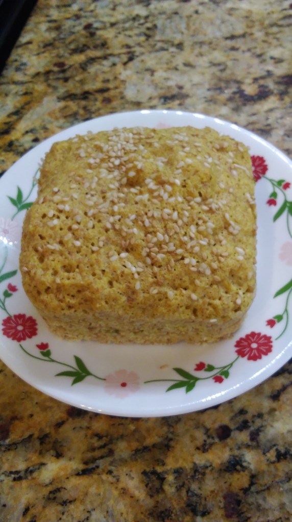 The bread comes out easily from the bowl. Place it on a place and cut the bread to slices and spread your favorite cream cheese, butter or nut butter spreads and enjoy.