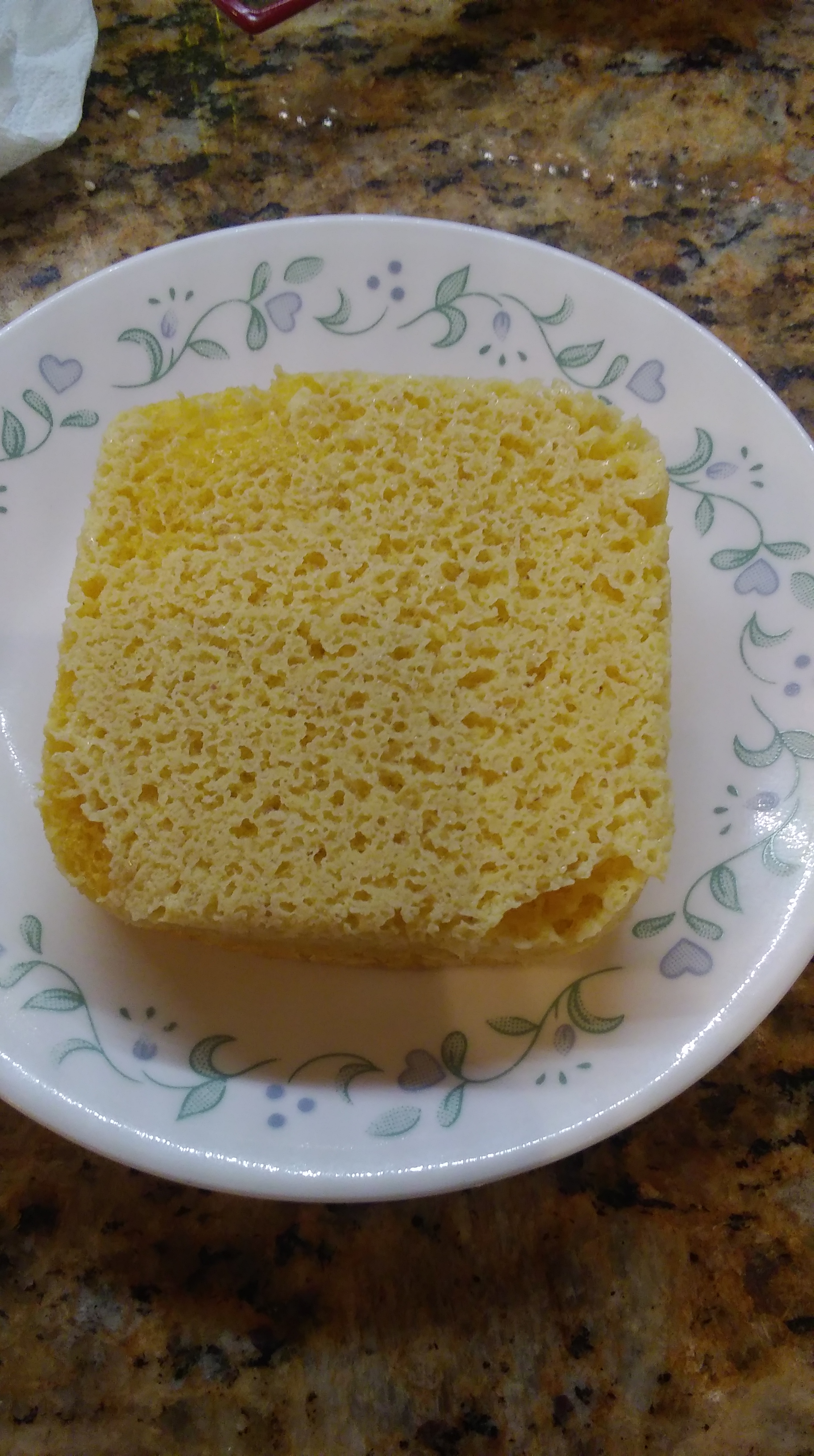It is baked within a minute and a half in the microwave. It is very soft and fluffy. The same recipe can be made with coconut flour also.