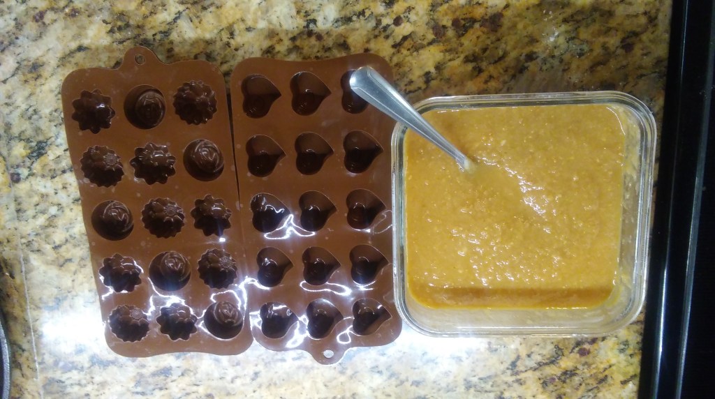 Line a loaf pan with parchment paper and transfer the fudge mixture into it or use your silicon molds if you have them.