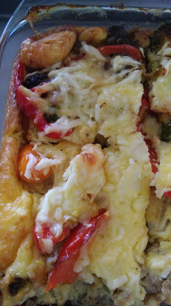 It is made with eggs, cheese, sausage and keto friendly vegetables.
