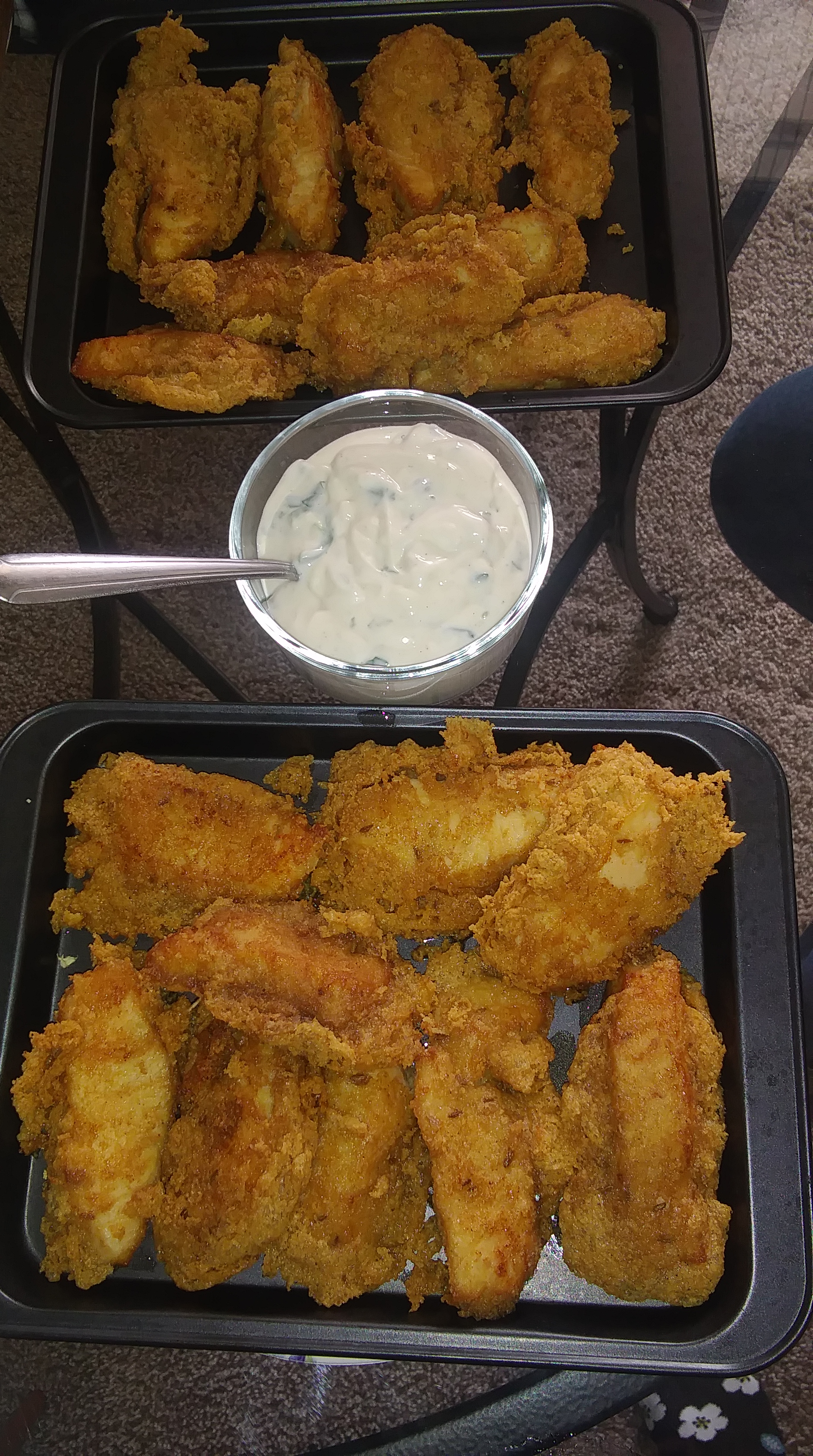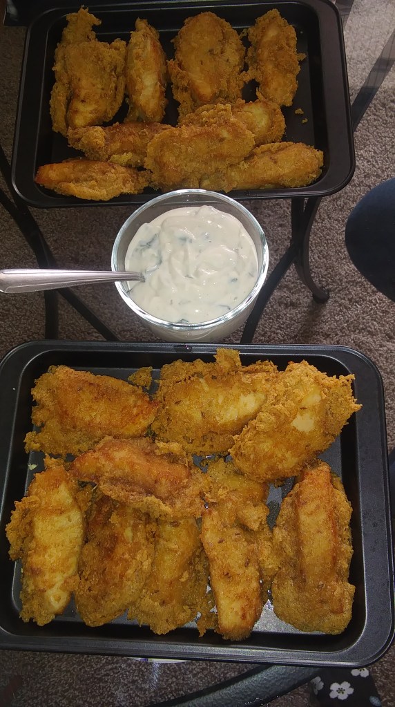 Drain the fried fish in a large bowl with paper towel and enjoy with a dip of keto tartar sauce.