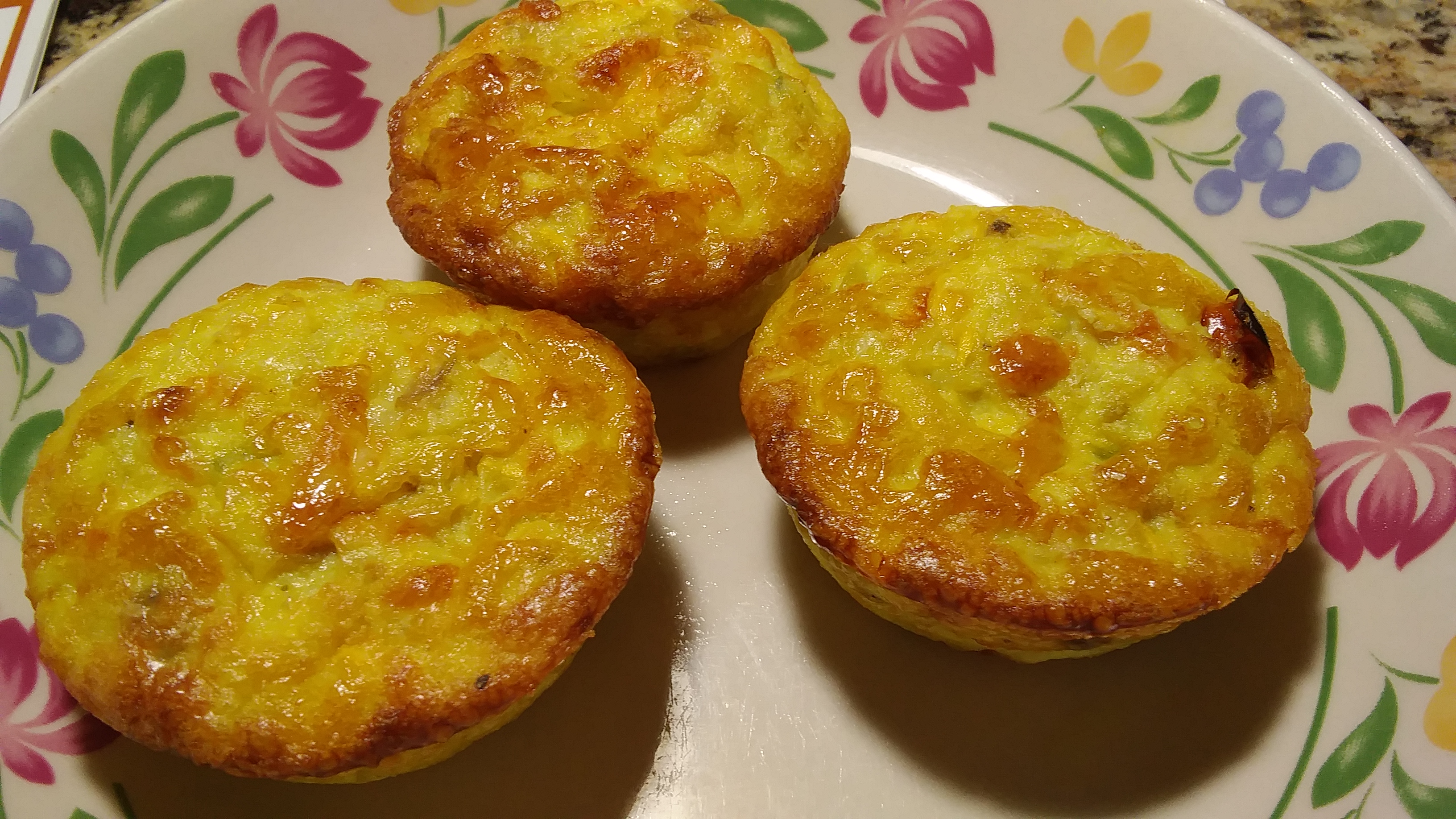 Notes: If you are using a loaf pan instead of a muffin tin. Prepare the loaf pan with oil or a parchment paper. Pour into the loaf pan and place in 350 degree preheated oven for 1 hour. Test with a tooth pick to the center for doneness. Allow to cool and remove with the parchment paper from the loaf pan and slice the quiche loaf and place in airtight plastic containers in the fridge.