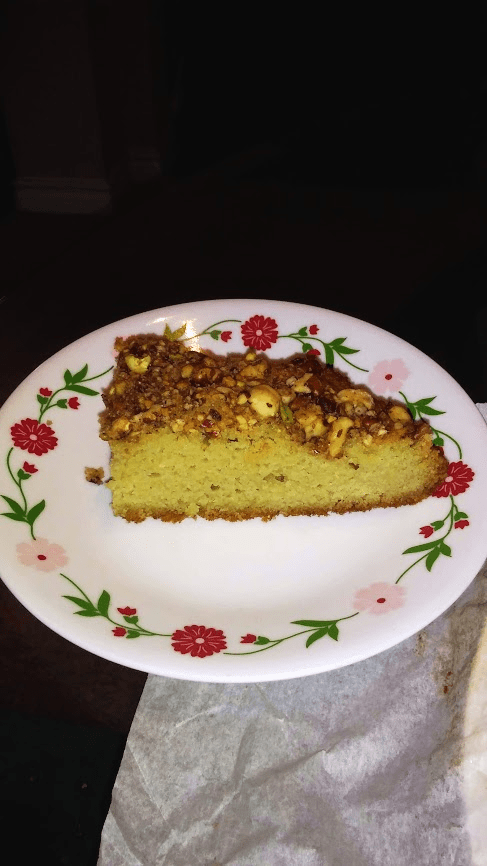 I added chopped nuts on top of my cake, you can also make a keto frosting on top of your cake or try having it with some keto ice cream.