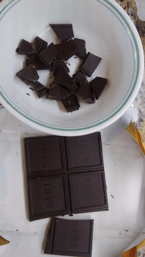 I used unsweetened chocolate chunks and chocolate chips from Lily’s brand of sugar free chocolates.