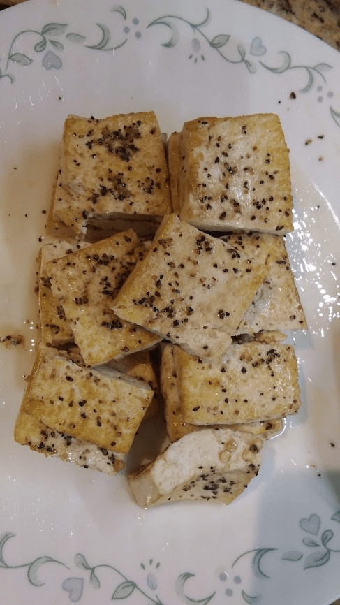 It may take about 10 minutes. Remove the tofu and place them on a plate and allow them to cool.