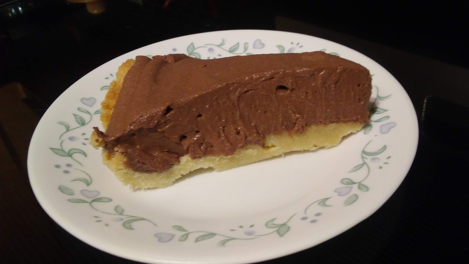 The pie crust is made with almond flour and the filling is made with silken tofu and melted chocolate chips.