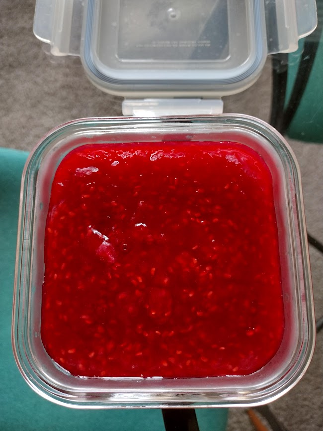In a large saucepan add the raspberries, sweetener and lemon juice.